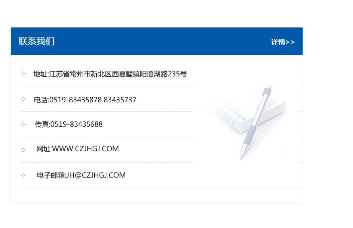傳真:0519-83435688    郵編:213135    網址:WWW.czjhgj_com.dlbocheng.com    電子郵箱:JH@czjhgj_com.dlbocheng.com